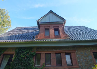 Dacheindeckung mit Erlus Ergoldsbacher E58S anthrazit engobiert, Gauben- und Giebelverkledung mit Alu-Blech vorbewittert